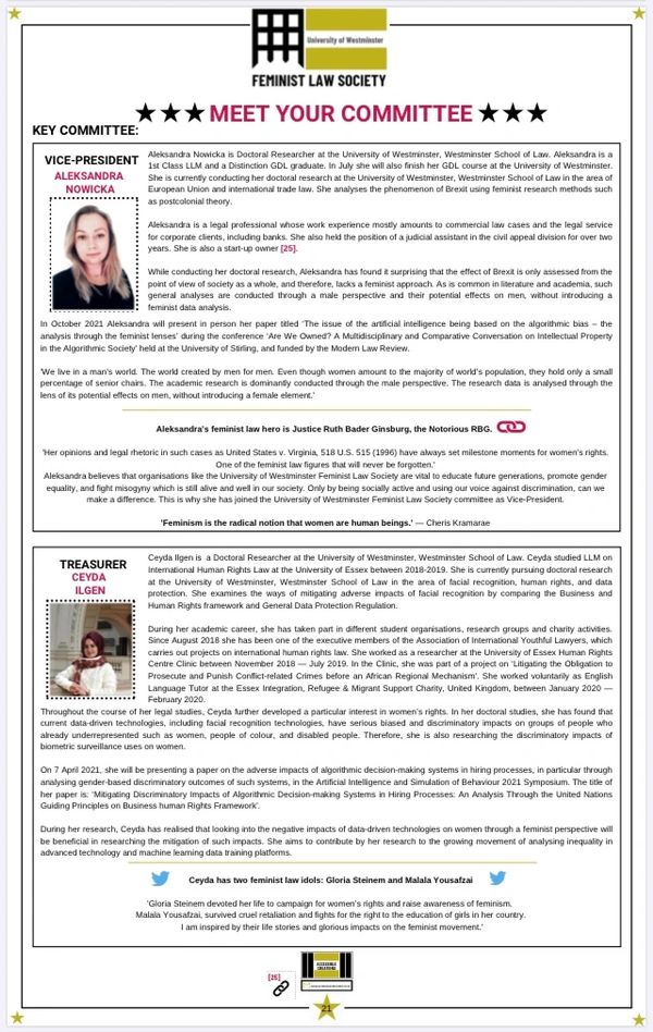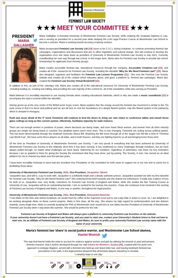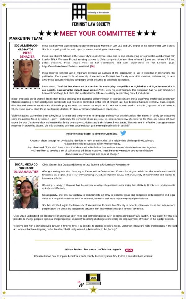 THE CURRENT UNIVERSITY OF WESTMINSTER FEMINIST LAW SOCIETY COHORT CAN BE FOUND AT: https://feministlawsociety.org.uk/university-of-westminster