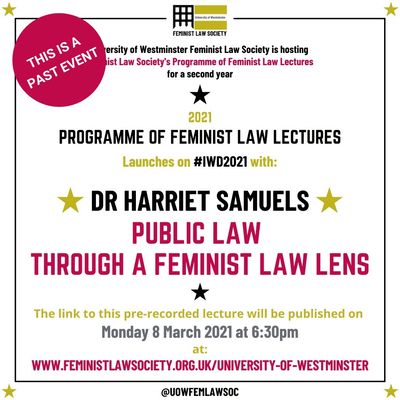 For example, University of Westminster Feminist Law Society hosted the Feminist Law Society Feminist Law Lecture Programme for two consecutive years. This programme of lectures was designed by Maria Gallagher. You can find out more about this lecture programme on the For Student Societies page.