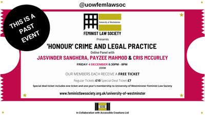'HONOUR' CRIME AND LEGAL PRACTICE ONLINE PANEL WITH GUEST SPEAKERS JASVINDER SANGHERA CBE, PAYZEE MAHMOD AND CRIS MCCURLEY
