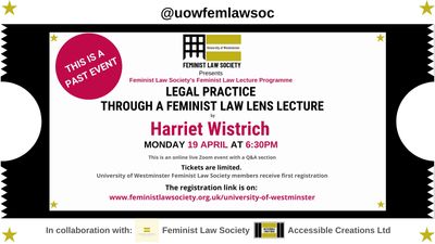University of Westminster Feminist Law Society is an affiliate of Feminist Law Society of England and Wales. As an affiliate, University of Westminster Feminist Law Society's aims are always in line with Feminist Law Society's.